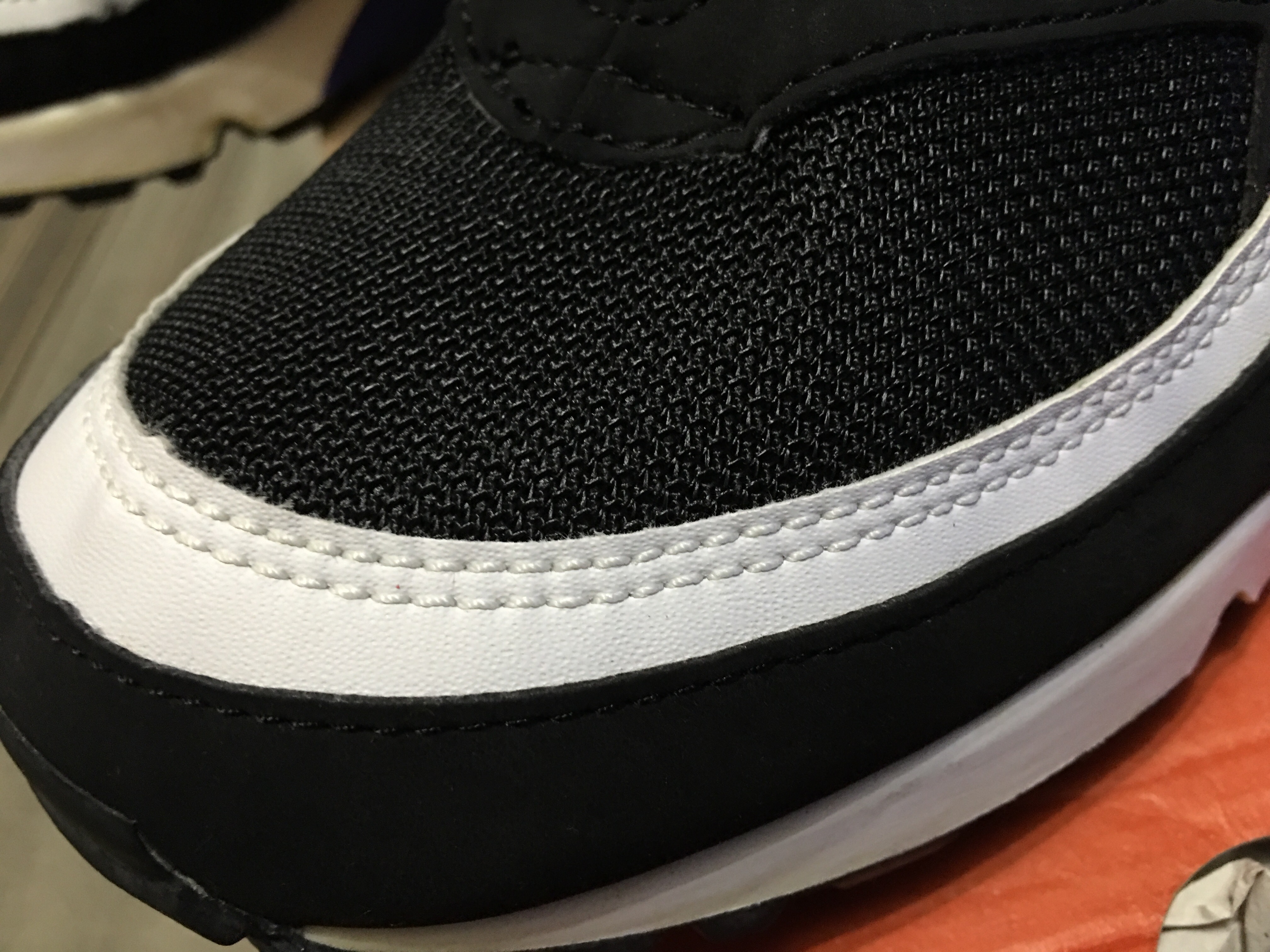 -Pasemos al empeine. En la edición 2003 tenemos una malla muy suave y un tanto acolchada mientras que en la edición 2016 la malla es mucho más rígida. En ambos modelos tenemos una capa más de piel blanca y una más de terciopelo.