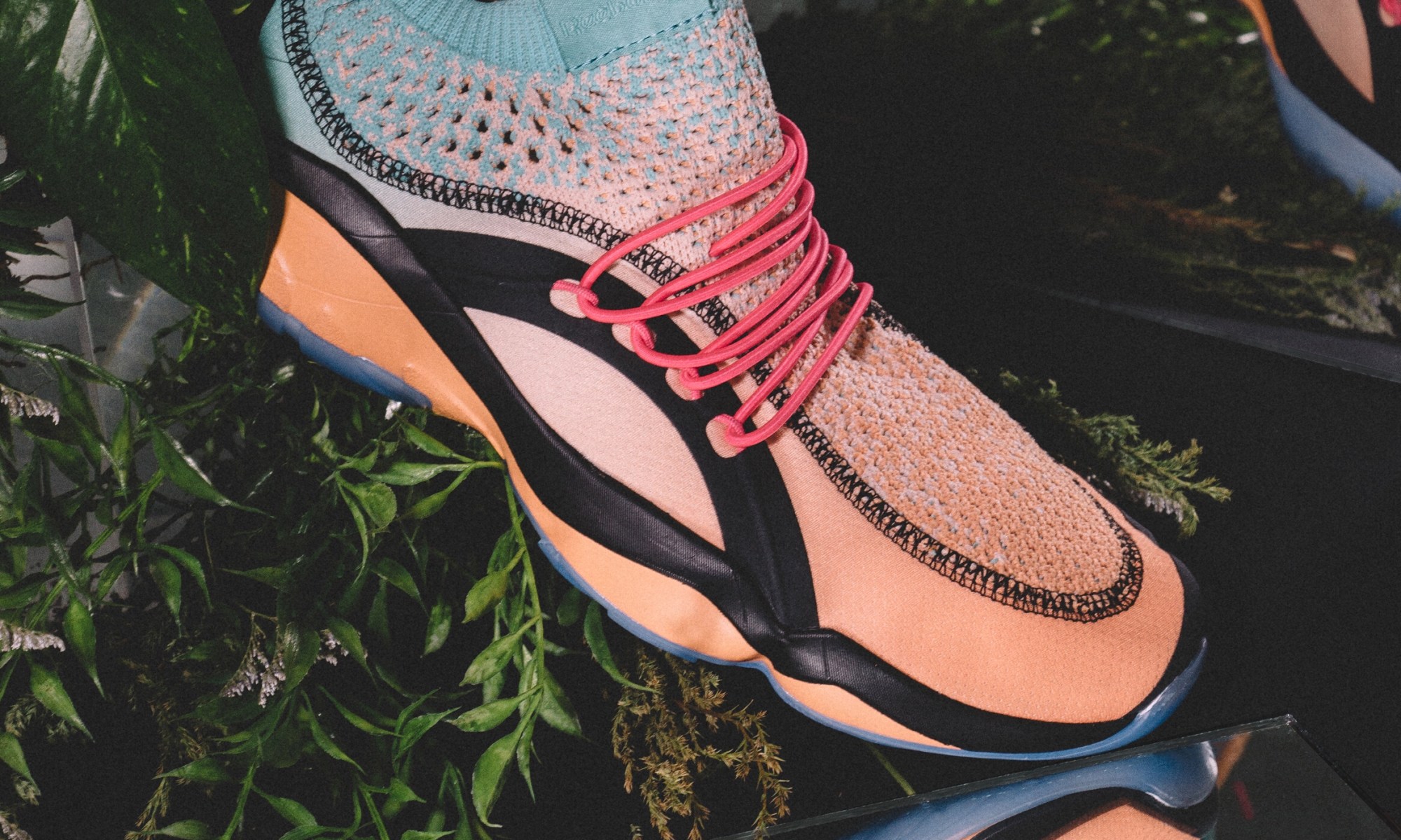 El ajolote es un anfibio que se caracteriza por sus colores y su silueta fluida y orgánica, a partir de estas características y como base la silueta clásica de los sneaker de Reebok Classic, nacieron los #AxolotlDMX.