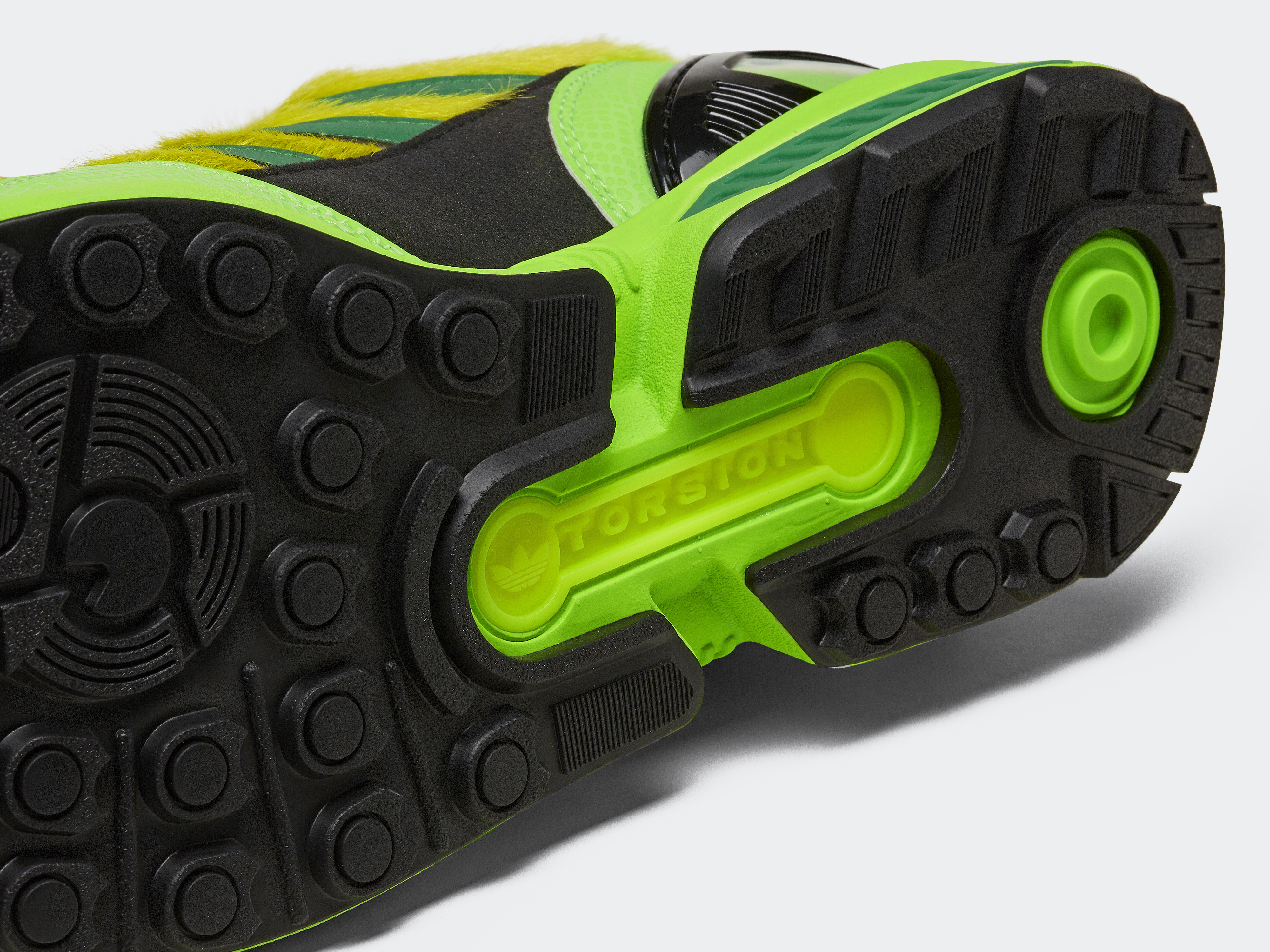 La plantilla, los cordones, la lengüeta y los accesorios combinables en color verde neón resaltan el diseño de esta llamativa silueta. Haciendo referencia a la serie original de esta colaboración, ZX-8000 atmos vienen en una caja conmemorativa de A-ZX totalmente blanca.