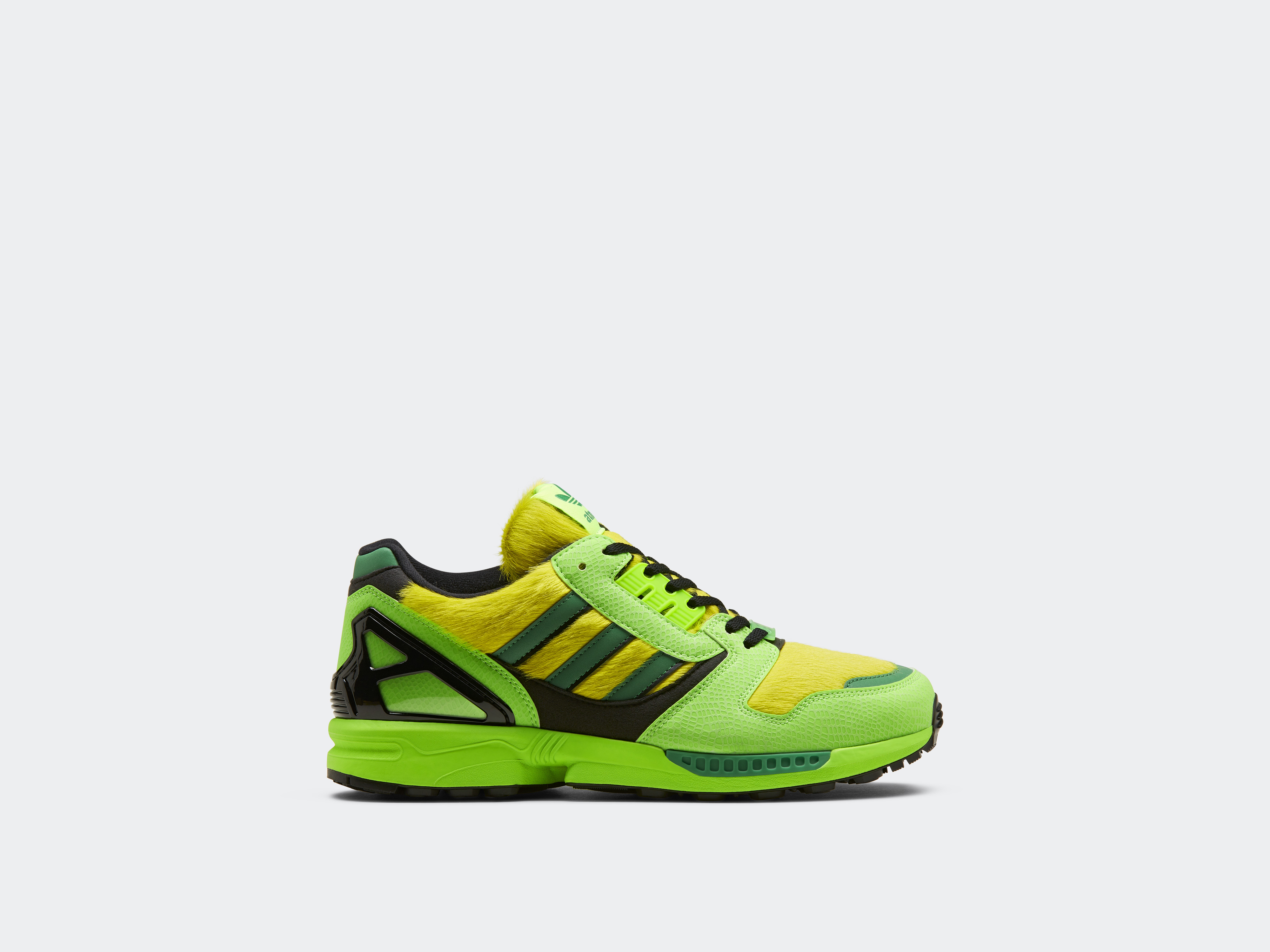 ¿Y cómo es esta nueva silueta? Como homenaje a la colaboración “G-SNK” de la tienda con ZX en el año 2011, ZX-8000 atmos luce un llamativo color fluorescente.
