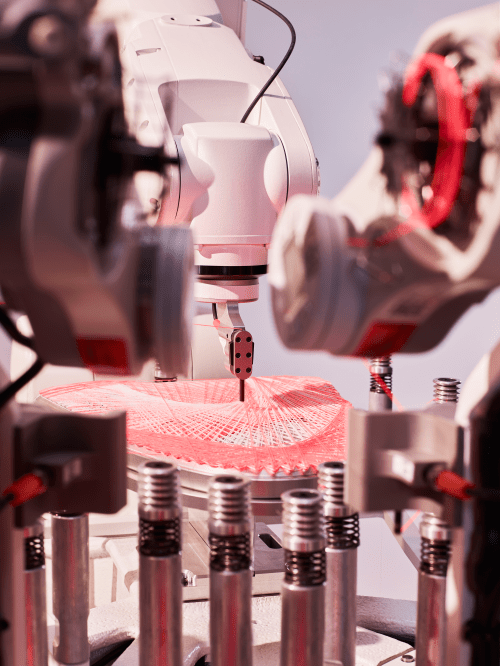 Este proceso es el primero de su tipo, ya que combina datos de los deportistas, con fabricación aditiva y robótica en la creación de “uppers” súper livianos en los que cada hilo está estratégicamente colocado para obtener un ajuste sin costura que permite el movimiento natural del pie. Cada hilo se puede colocar en cualquier dirección para ensamblar diferentes partes del calzado en una sola pieza, de manera que los “uppers” de STRUNG no necesitan componentes de refuerzo a diferencia de otros textiles, lo que permite que el atleta tenga movilidad absoluta.