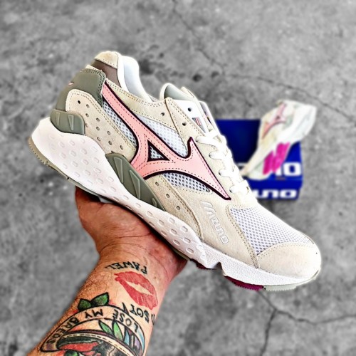 No lo tenía en el radar, pero «scrolleando» mi instagram encontré la publicación y me gustó mucho, decía que acababa de ser el release y pues sin pensarlo entre a la página de la tienda francesa y me dispuse a comprarlo. En lo personal no tenía ningún par de Mizuno y la combinación de colores me pareció increíble, los materiales son piel, malla y gamuza.