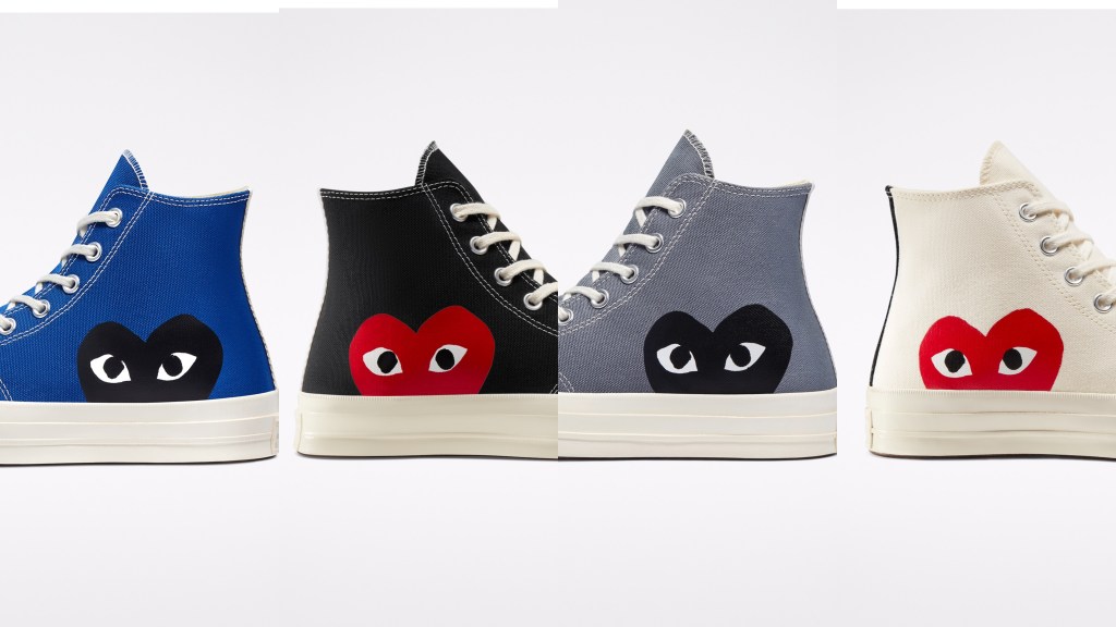 La colaboración entre Converse y Comme des Garçons ha llevado la visión conceptual de la marca a las calles de todo el mundo durante más de una década, utilizando el ya característicos logotipo del corazón. Este año podremos encontrar la colección en los ya conocidos colores negro y blanco y las nuevas opciones gris y azul.